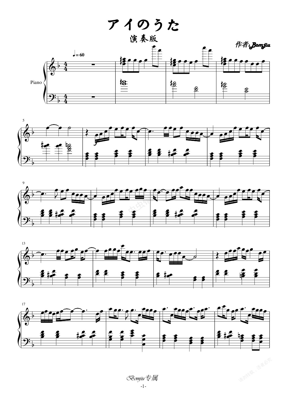 钢琴谱:アイのうた(Bomjiu演奏版)