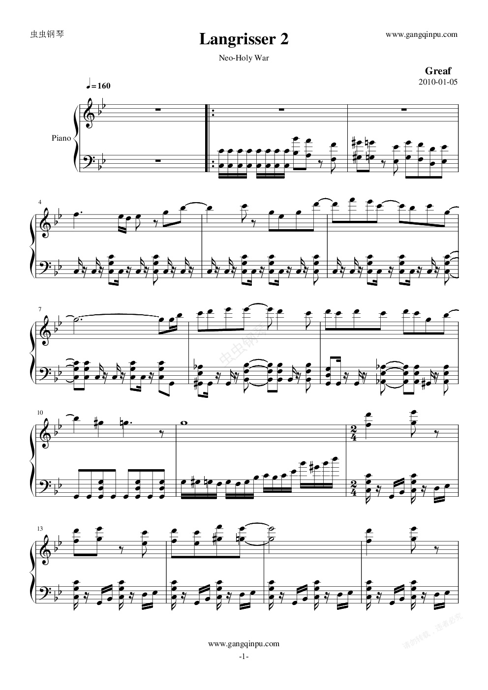 钢琴谱:梦幻模拟战 - Langrisser 2 《Neo-Holy War》