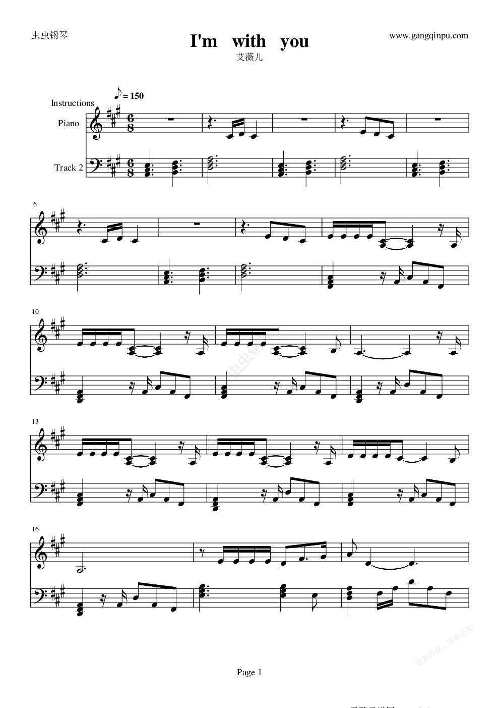 钢琴谱:i'm with you
