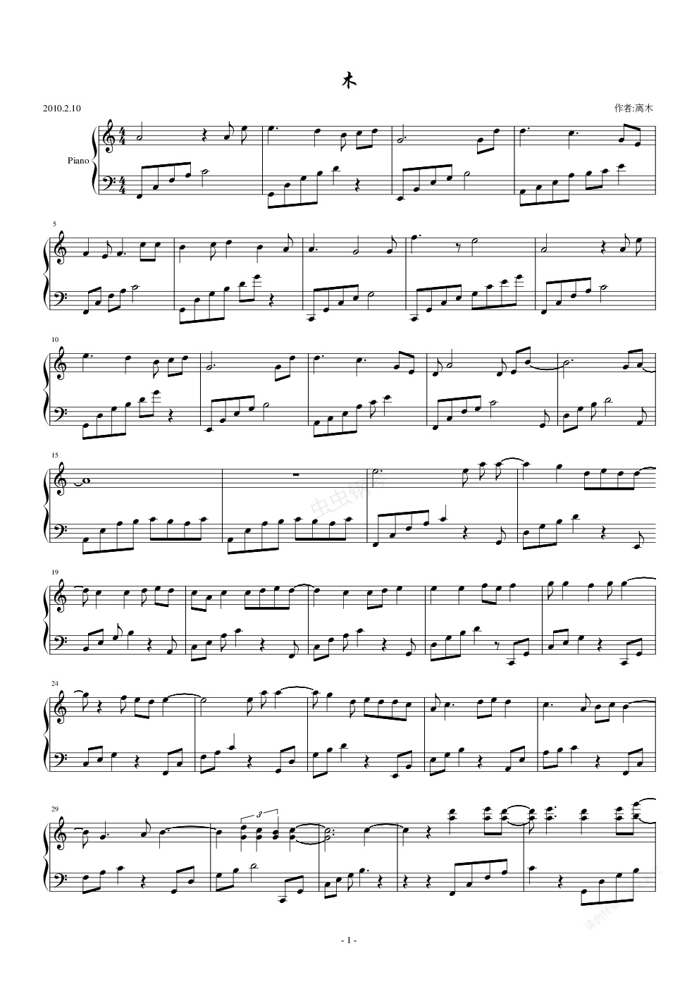 钢琴谱:木