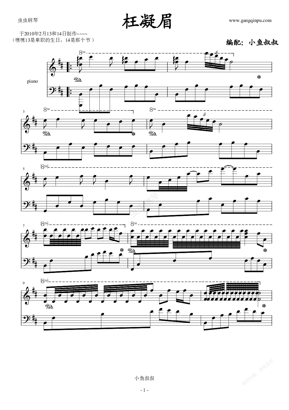 钢琴谱:枉凝眉