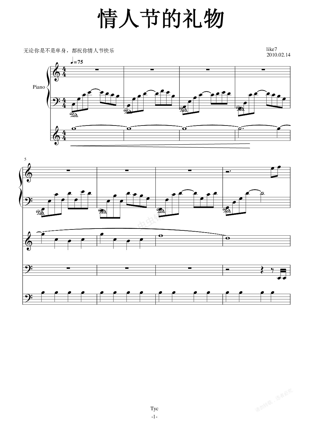 钢琴谱:情人节的礼物