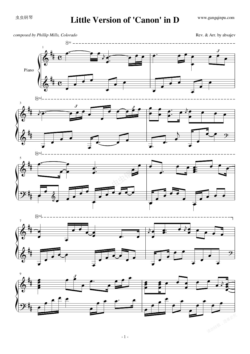 钢琴谱:卡农随想曲