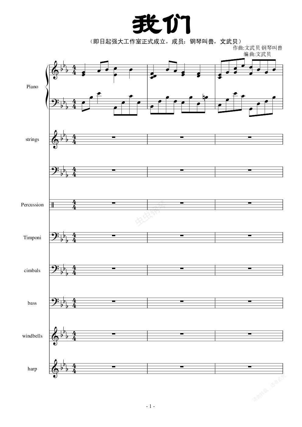 (左右播放器分别为两种效果) 又一次和PBB的合作,以后我们的合作将会更多,因为发了这首曲子代表着我们两个的组合——“强大工作室”正式成立。“强大”二字不是指现状,而是指我们的目标。  如果说上次我们合作的《双簧》是增进我们的友谊,那么这次的《我们》就是巩固我们友谊。无论是《双簧》还是《我们》,它都代表着两个人——钢琴叫兽和文武贝,合作写曲的目的是见证我们之间的友谊,希望我们的友谊之树会开满鲜花! (这次没有标出哪段是谁写的,那就请大家猜猜看噢!(*^__^*)