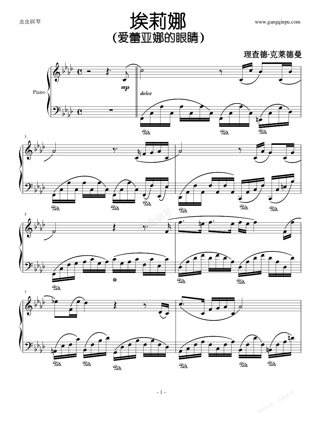 钢琴谱:埃莉娜(爱蕾亚娜的眼睛)