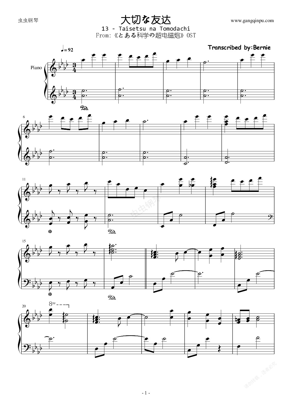 钢琴谱:大切な友达(某科学的超电磁炮)