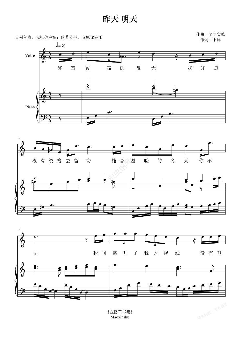 答应为别人作曲,限期一年。从开始构思主旋律到全部完成,用了大半年。由于原词段落较多,内容繁杂紧密,所以不得不进行较大幅度的修改,最终配曲。对主旋律,还算满意。伴奏则因自己水平有限,尽力而不敢恭维。