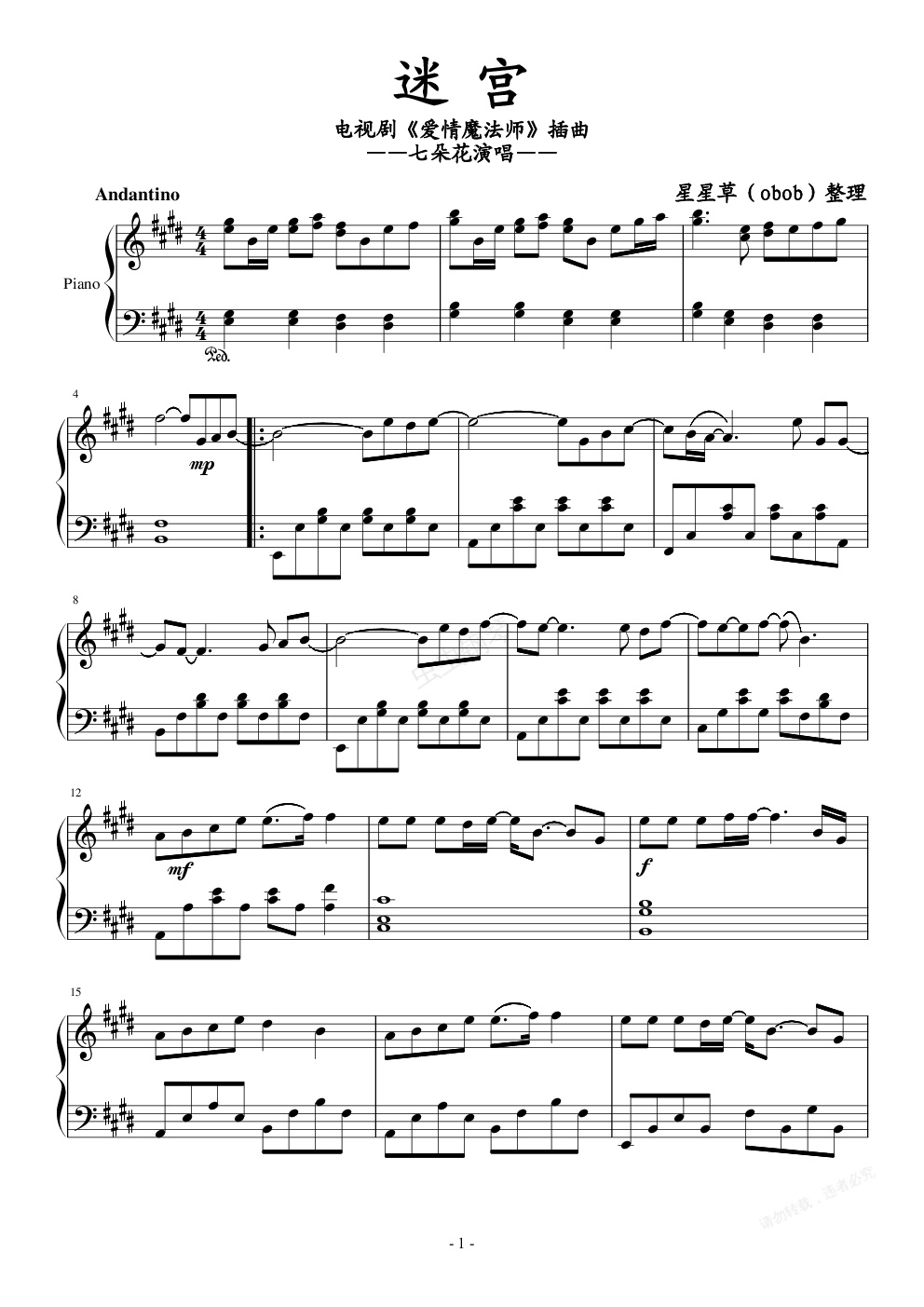 钢琴谱:迷宫(七朵花)