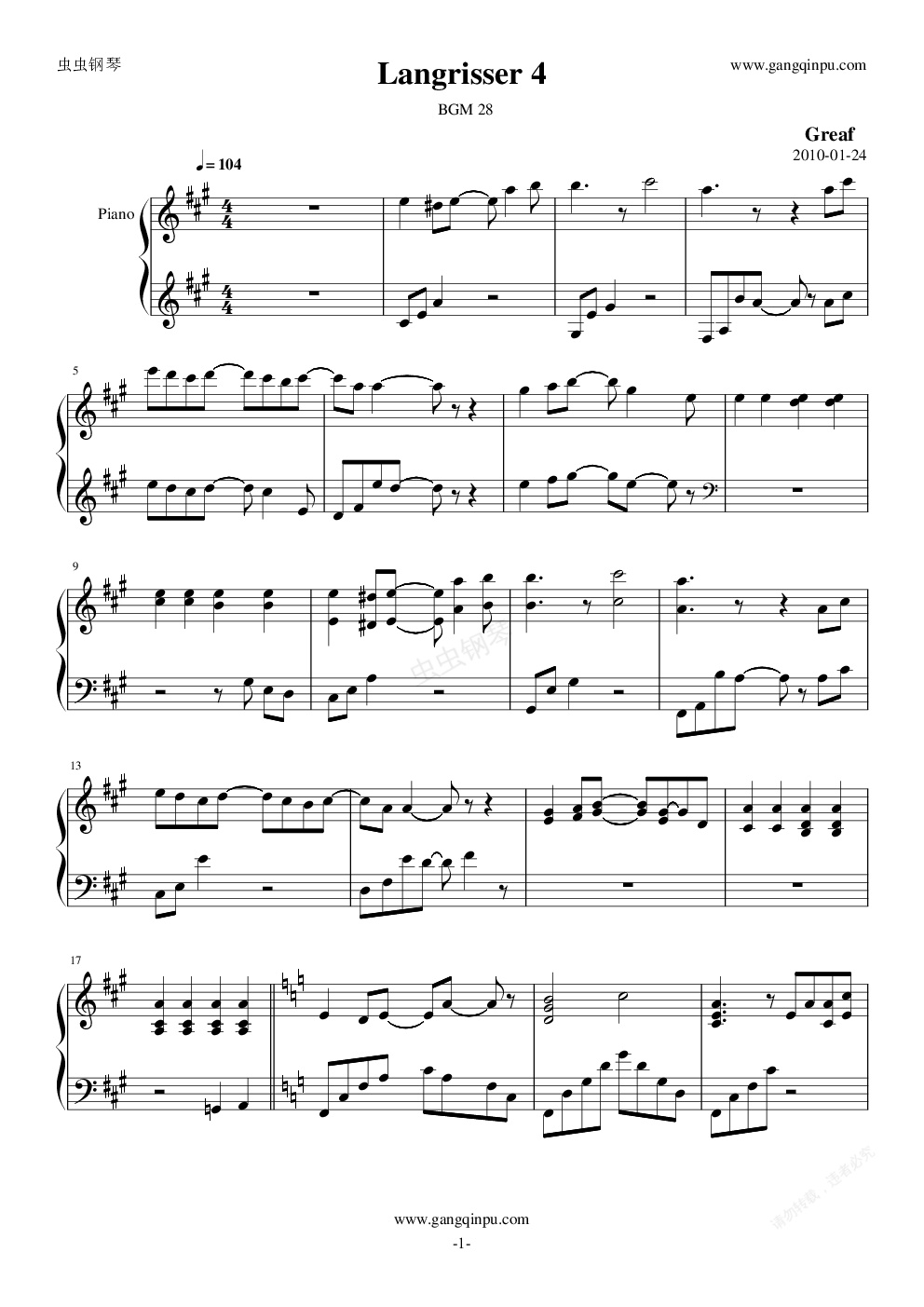 钢琴谱:梦幻模拟战 - Langrisser 4 BGM 28