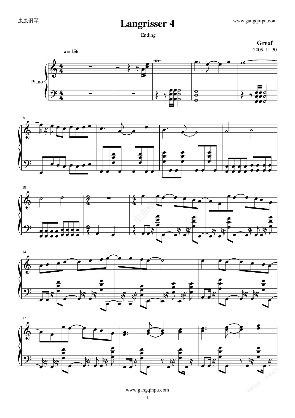 钢琴谱:梦幻模拟战 - Langrisser 4 Ending