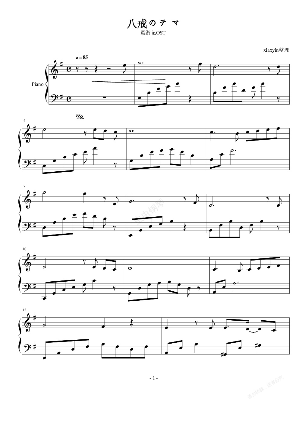 钢琴谱:最游记 - 八戒のテ マ