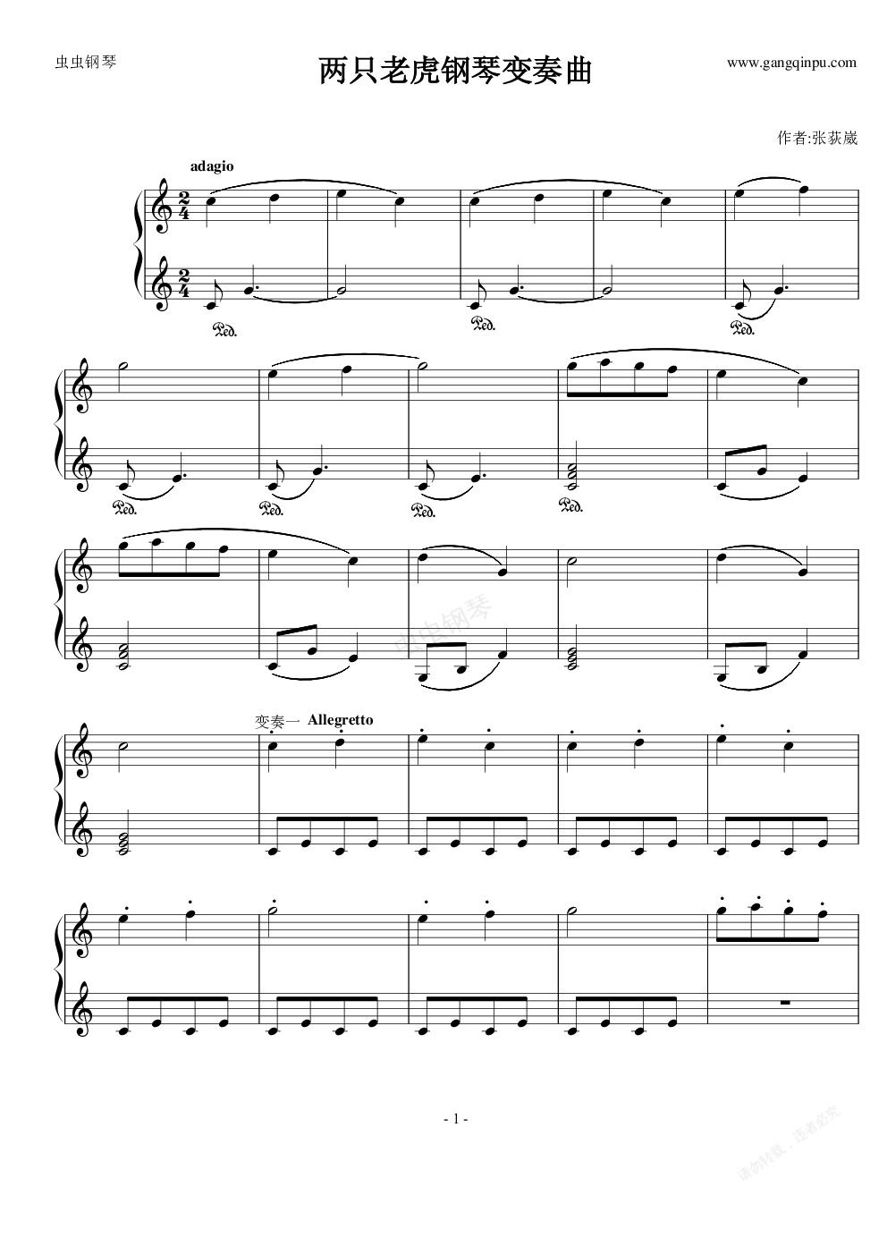 钢琴谱:两只老虎钢琴变奏