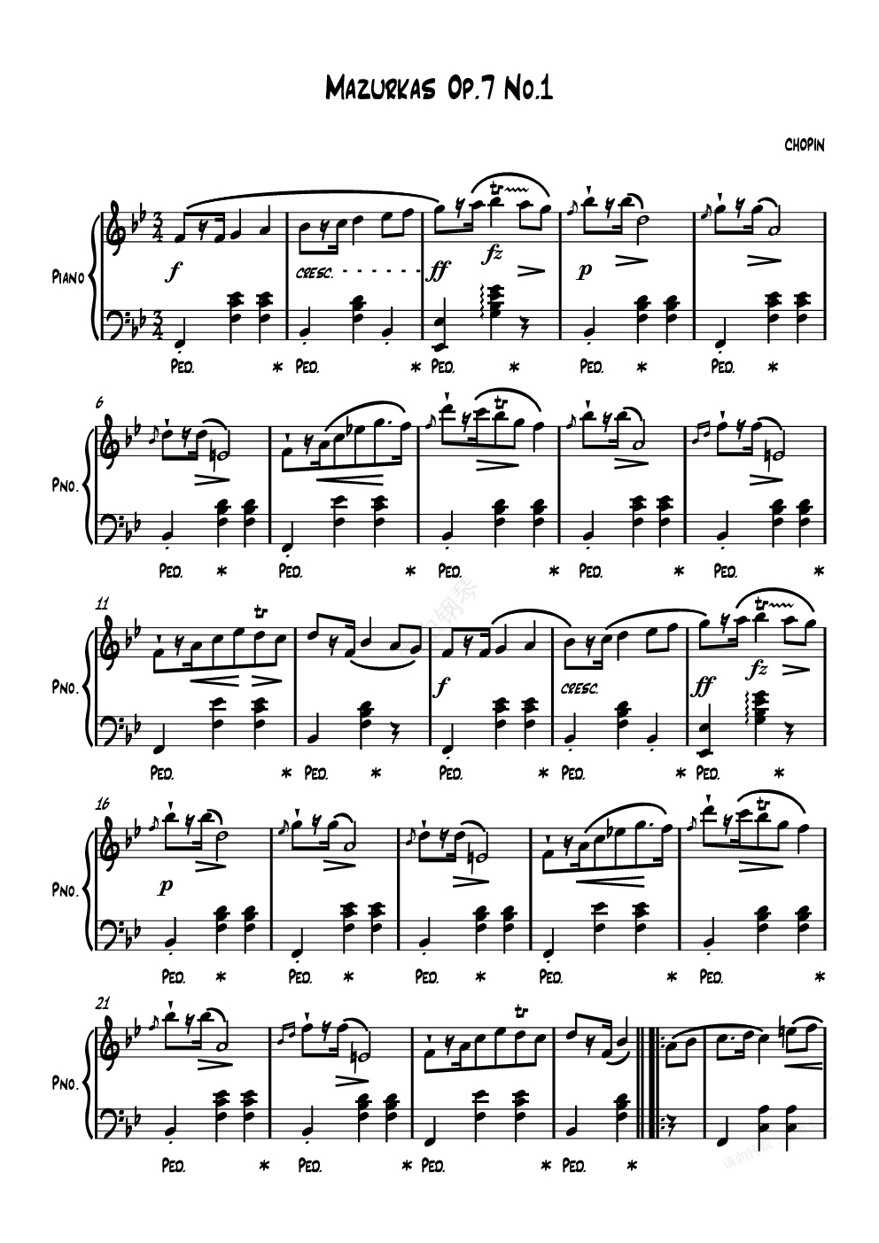钢琴谱:Mazurkas Op 7 No 1