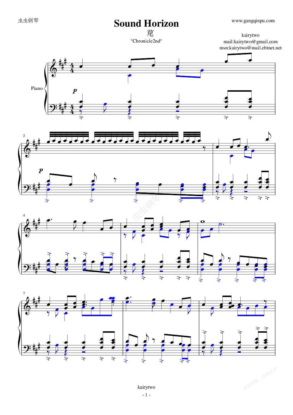 钢琴谱:Sound Horizon - 约束の丘