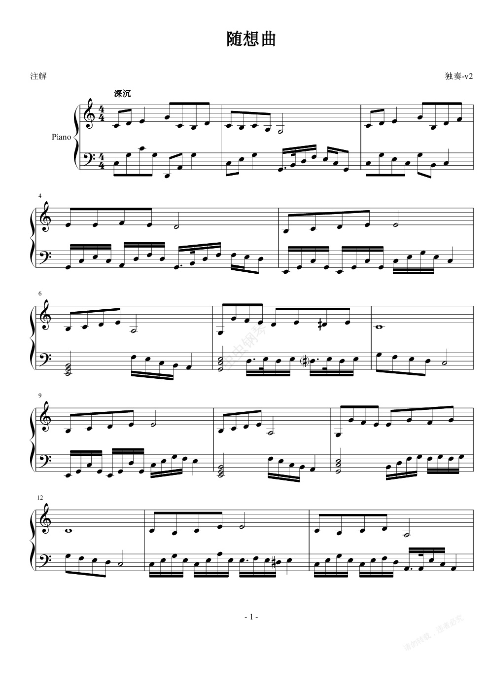 钢琴谱:随想曲