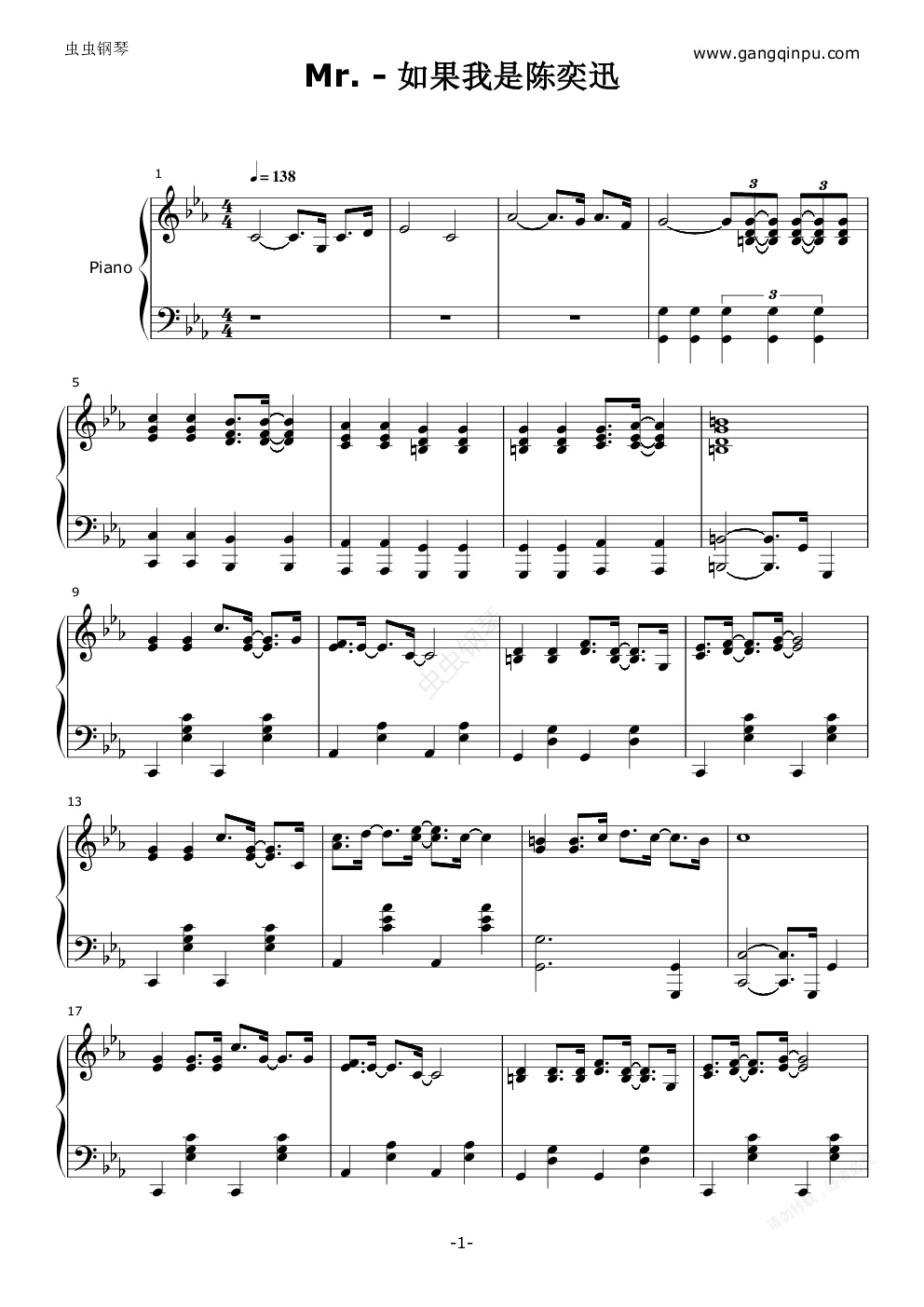 钢琴谱:如果我是陈奕迅