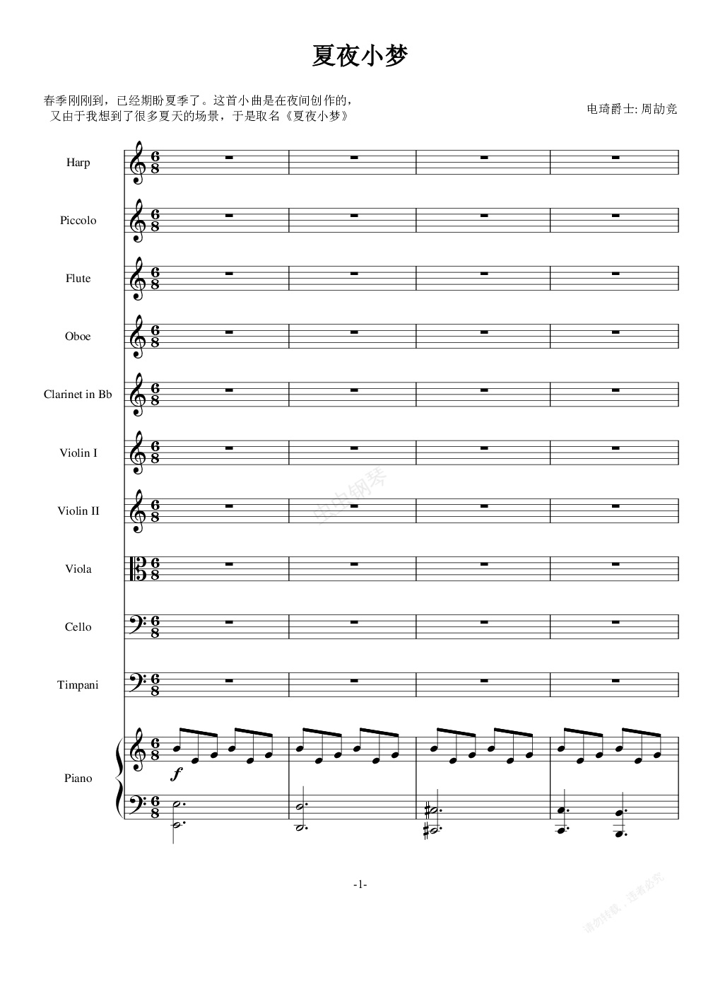 由于本身在乐队拉小提琴,写这个曲子的同时顺便把乐队的各种乐器介绍一遍