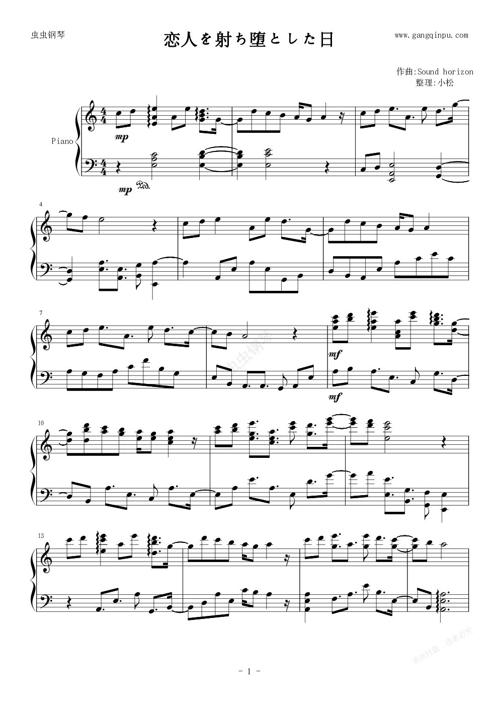 钢琴谱:sound horizon - 恋人を射ち堕とした日