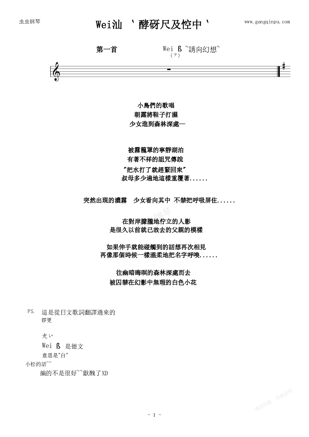 钢琴谱:sound horizon - Weiβ ~幻想への誘い