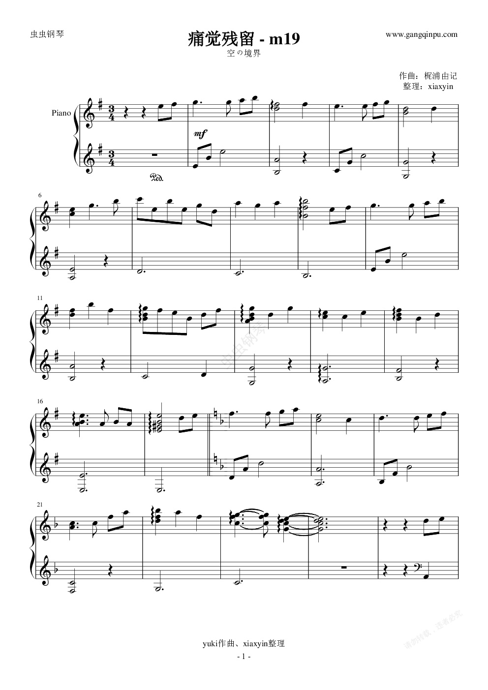 钢琴谱:空之境界 - 痛觉残留 - m19