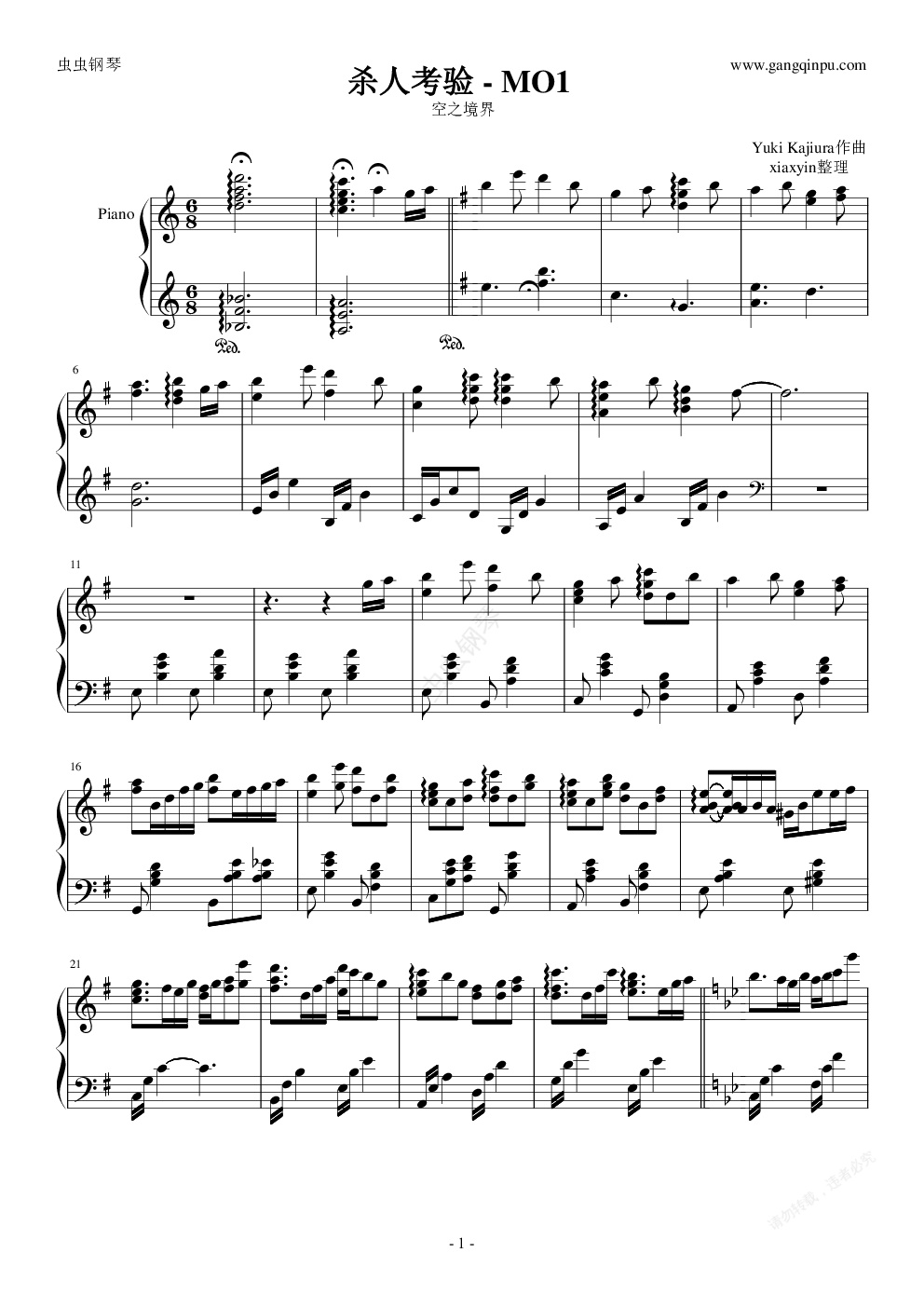 钢琴谱:空之境界 - 杀人考验 - MO1