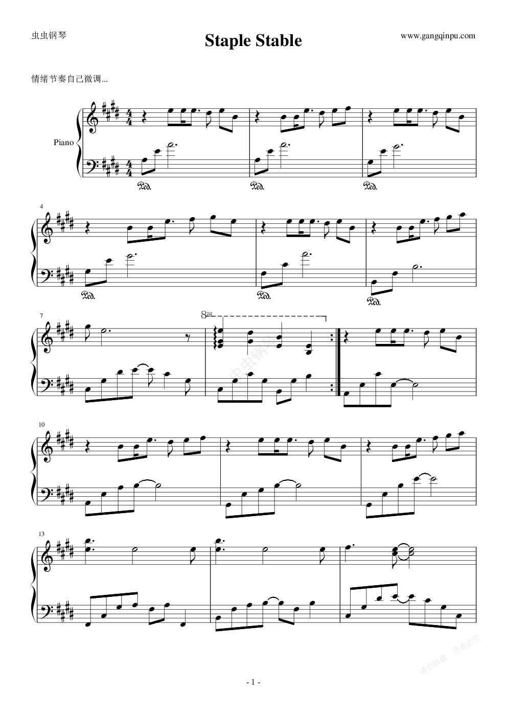 钢琴谱:Staple Stable