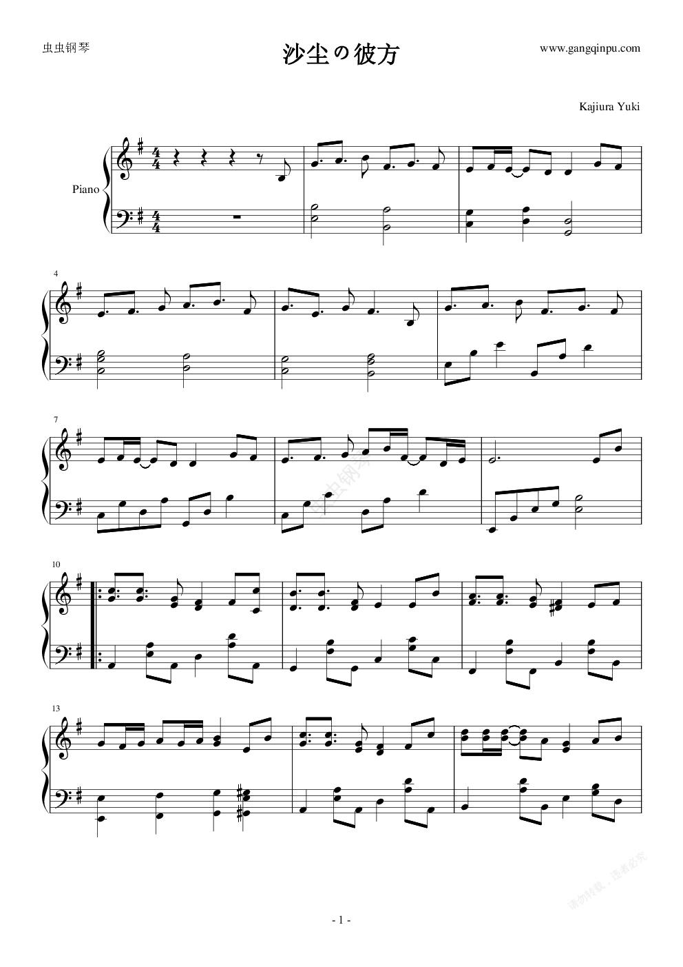 钢琴谱:梶浦由记 - 沙尘の彼方