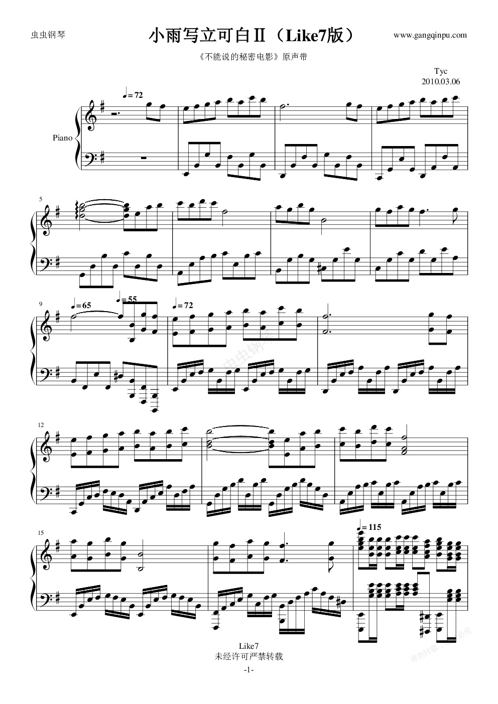 钢琴谱:小雨写立可白Ⅱ(L7版)