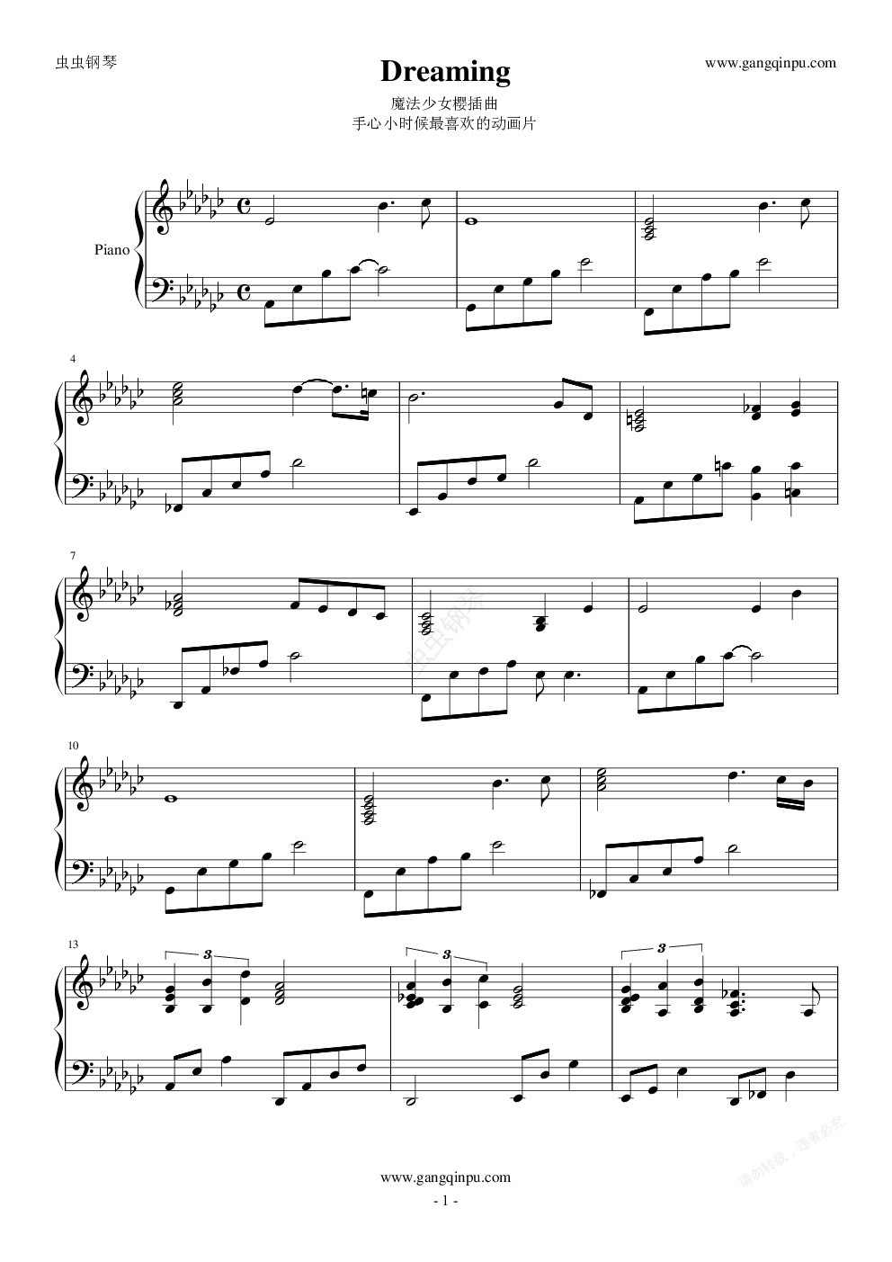 钢琴谱:魔法少女樱—Dreaming