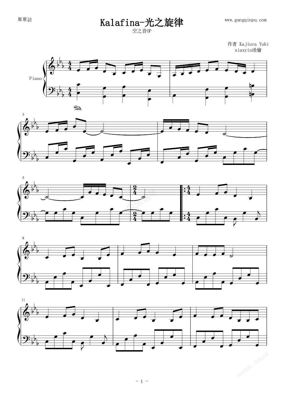 钢琴谱:梶浦由记 - 光之旋律