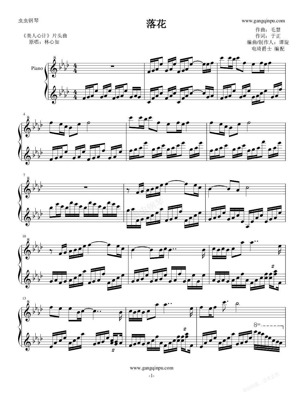 前些天一直在关注《美人心计》这部电视剧,看了宣传片后爱上了这首片头曲。虽然电视剧我还暂时没有时间看,不过我还是编配了一下这首《落花》。一个钢琴演奏确实有有点单薄,但是我觉得还是挺接近原版的。希望大家喜欢,第二次尝试编配了,还蛮有成就感的。 以下是歌词 《落花》 花开的时候最珍贵,花落了就枯萎, 错过了花期花怪谁,花需要人安慰…… 一生要哭多少回,才能不流泪, 一生要流多少泪,才能不心碎, 我眼角眉梢的憔悴,没有人看得会, 当初的誓言太完美,像落花满天飞, 冷冷的夜里北风吹,找不到人安慰, 当初的誓言太完美,让相思化成灰…… 一生要干多少杯,才能不喝醉, 一生要醉多少回,才能不怕黑, 我眼角眉梢的憔悴,没有人看得会, 当初的誓言太完美,像落花满天飞, 冷冷的夜里北风吹,找不到人安慰, 当初的誓言太完美,让相思化成灰…… 冷冷的夜里北风吹,找不到人安慰, 当初的誓言太完美,让相思化成灰…… 花开的时候最珍贵,花落了就枯萎, 错过了花期花怪谁,花需要人安慰……