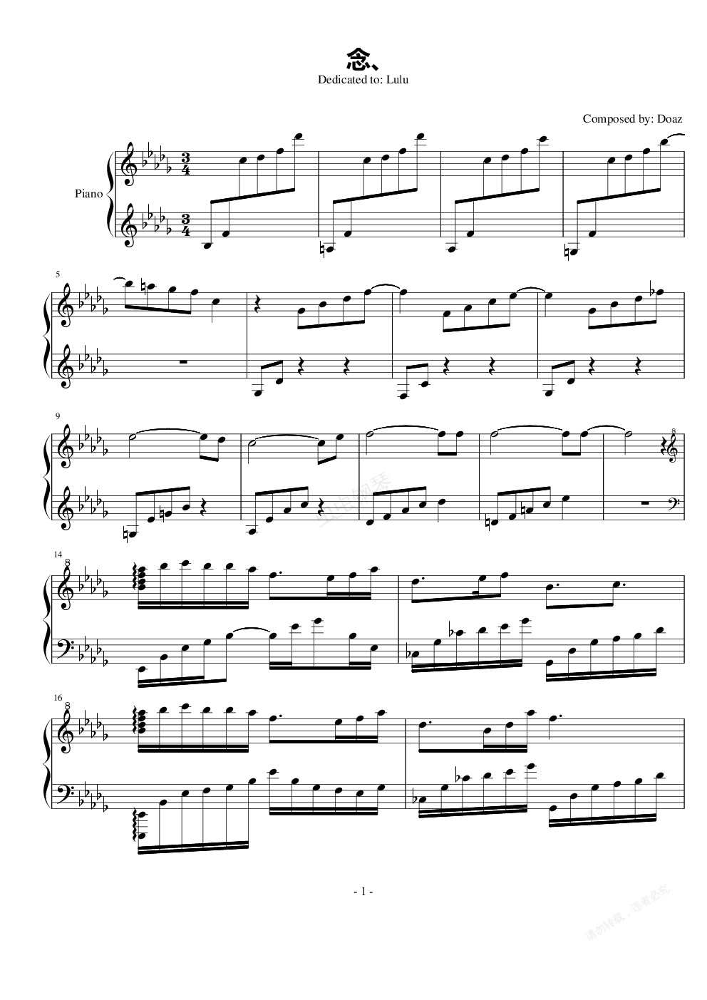 钢琴谱:念、
