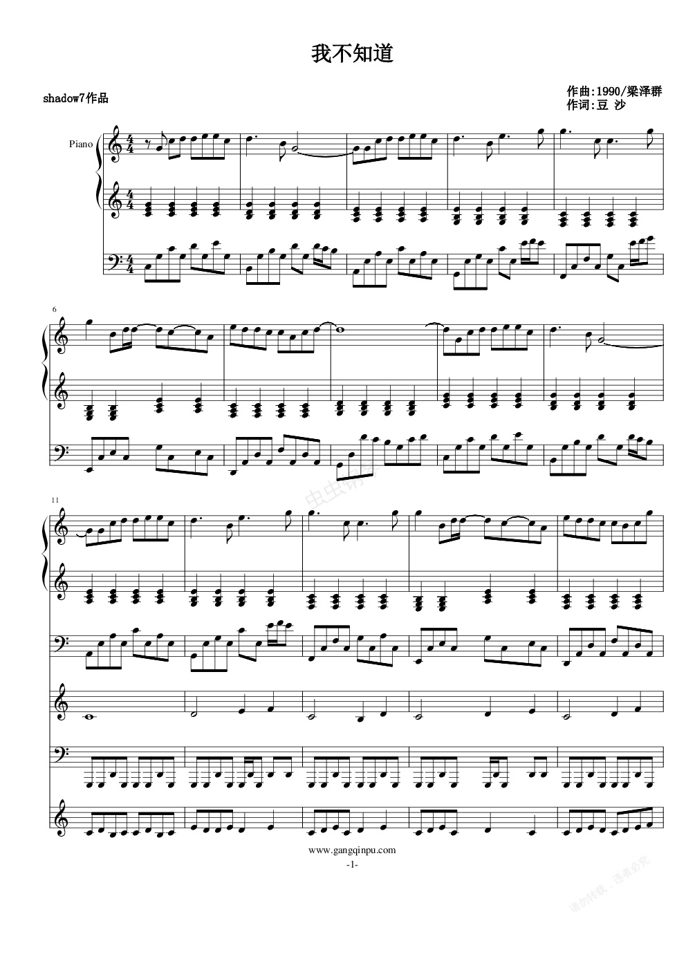 钢琴谱:我不知道(演奏版)
