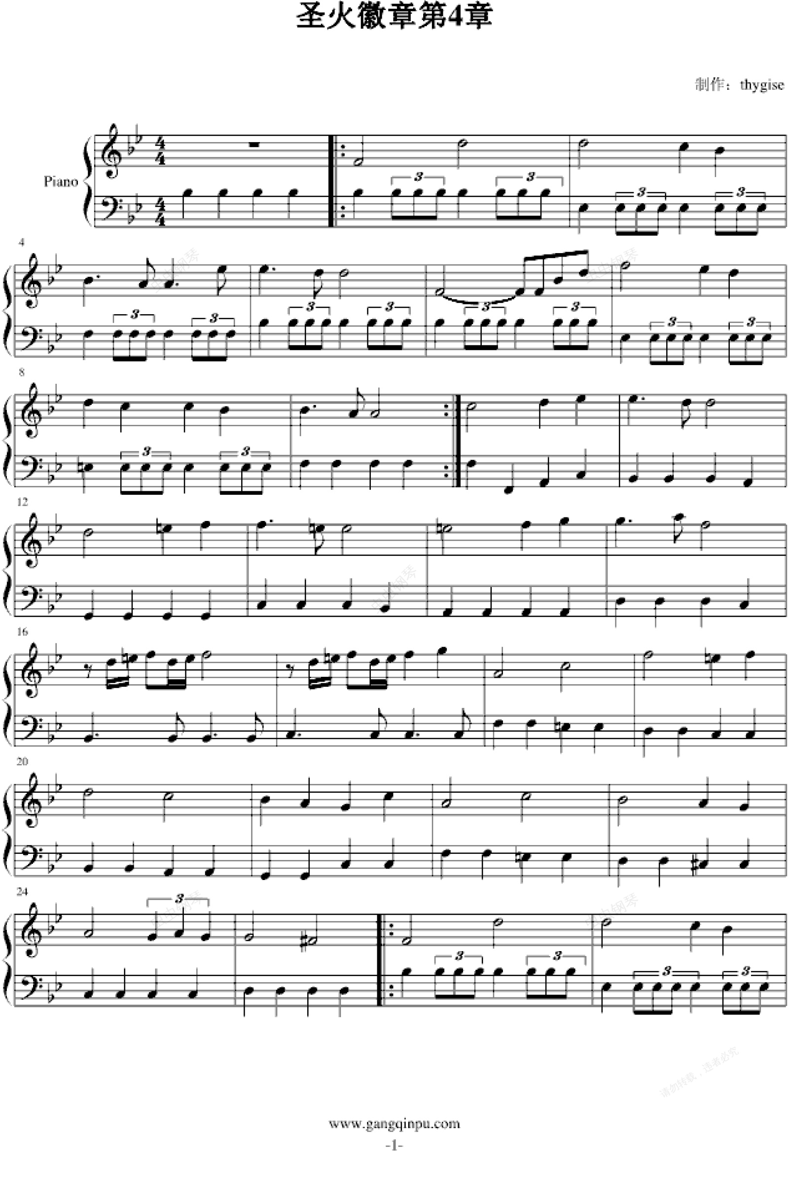 钢琴谱:圣火徽章外传第4章背景音乐
