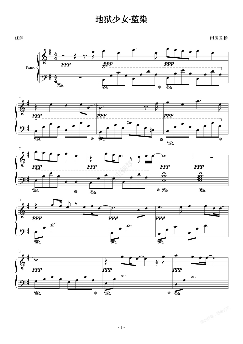 钢琴谱:地狱少女·蓝染