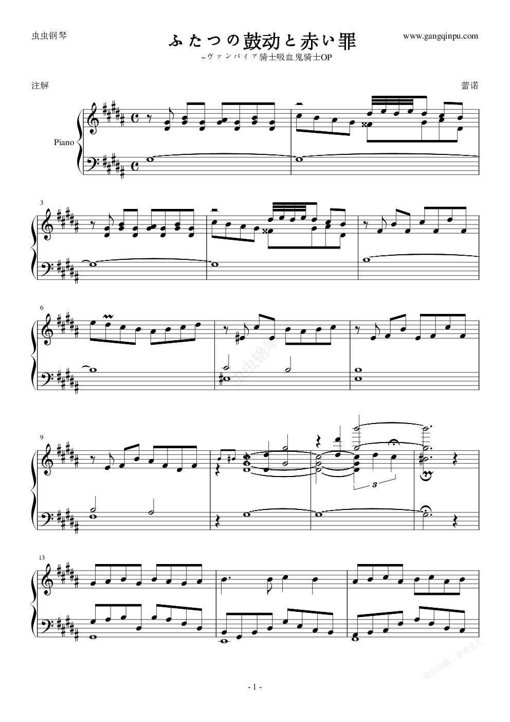 钢琴谱:吸血鬼骑士--第一季主题曲