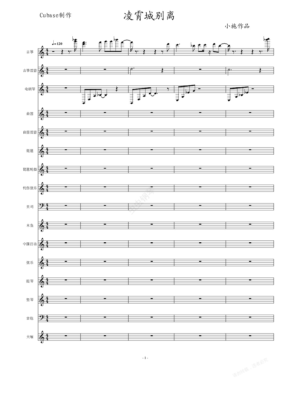 钢琴谱:中国风-《凌霄城别离》【古筝、琵琶、曲笛、弦乐】