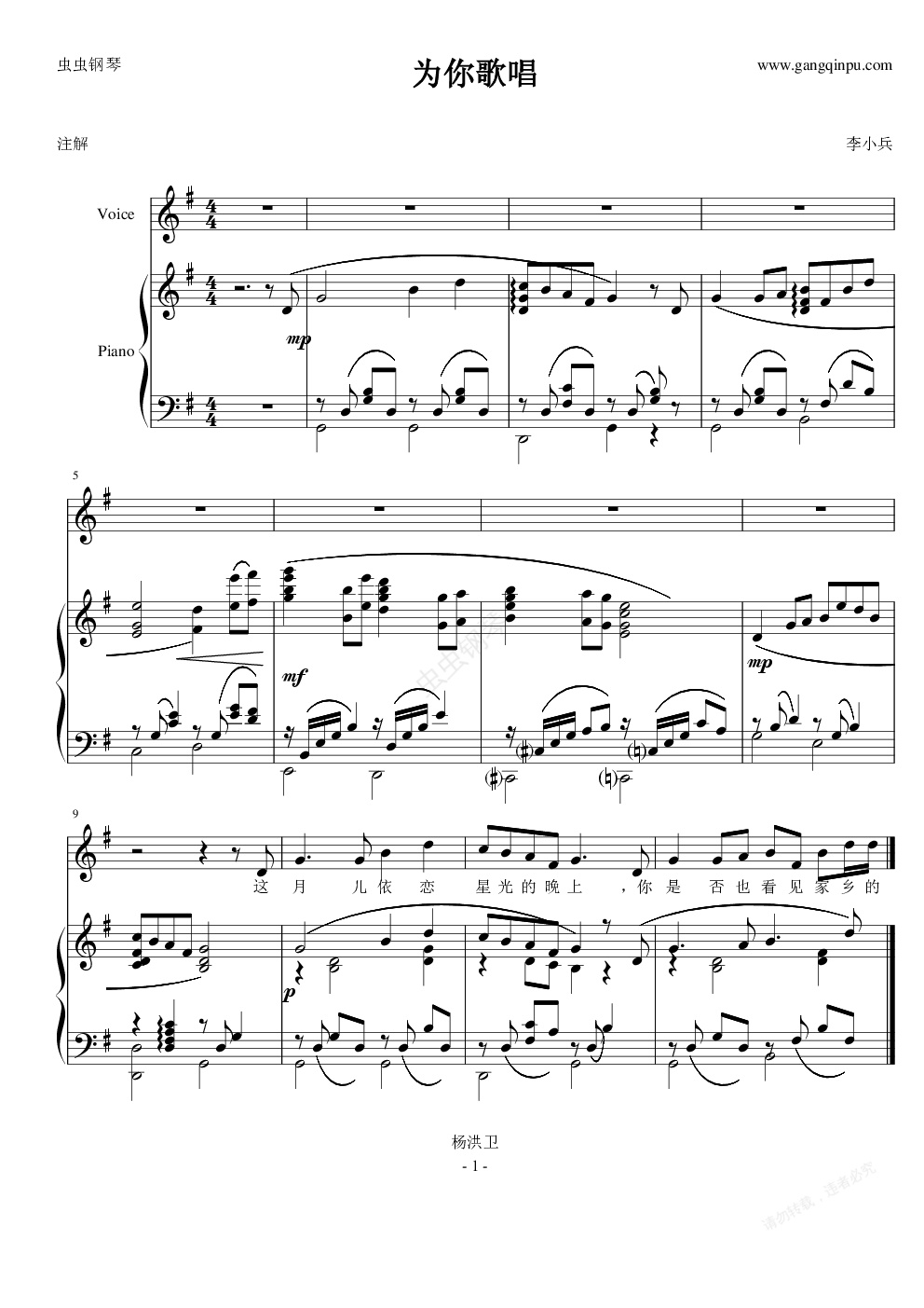 这是戴玉强唱的为你歌唱五线谱版,需要全谱的朋友请联系,另外本人可制作各种声乐五线谱,可移调,需要的朋友也可以联系我