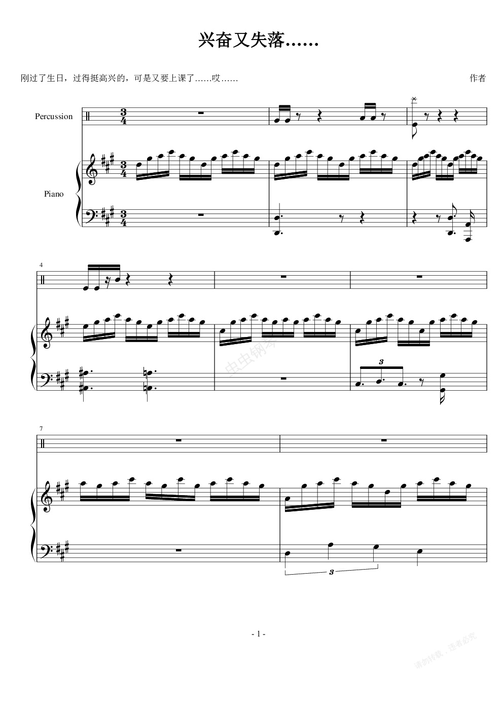 钢琴谱:兴奋又失落