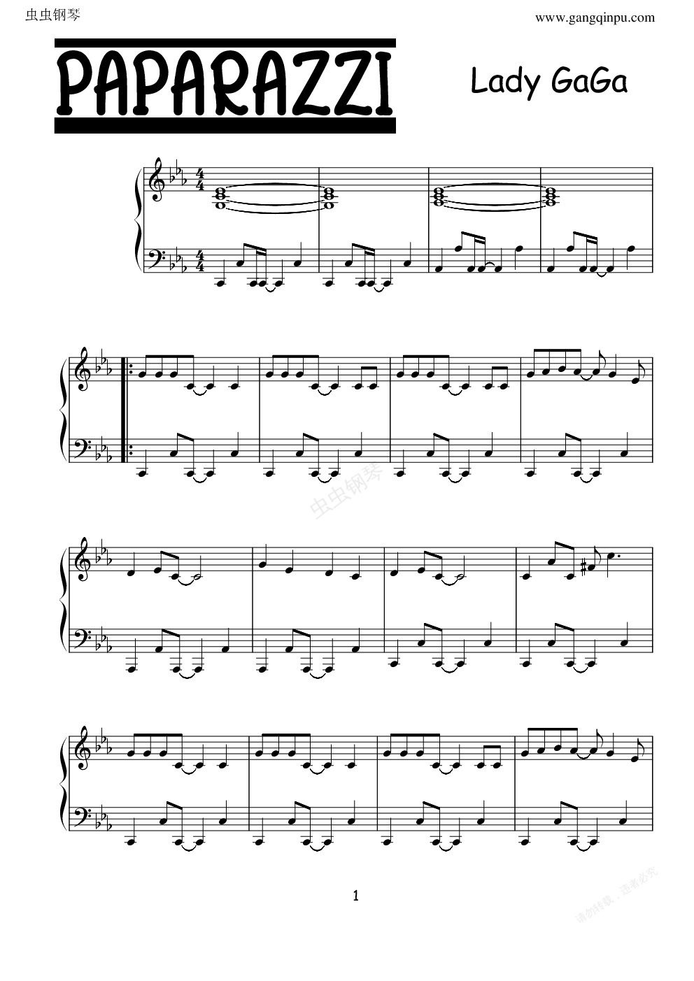 钢琴谱:Paparazzi