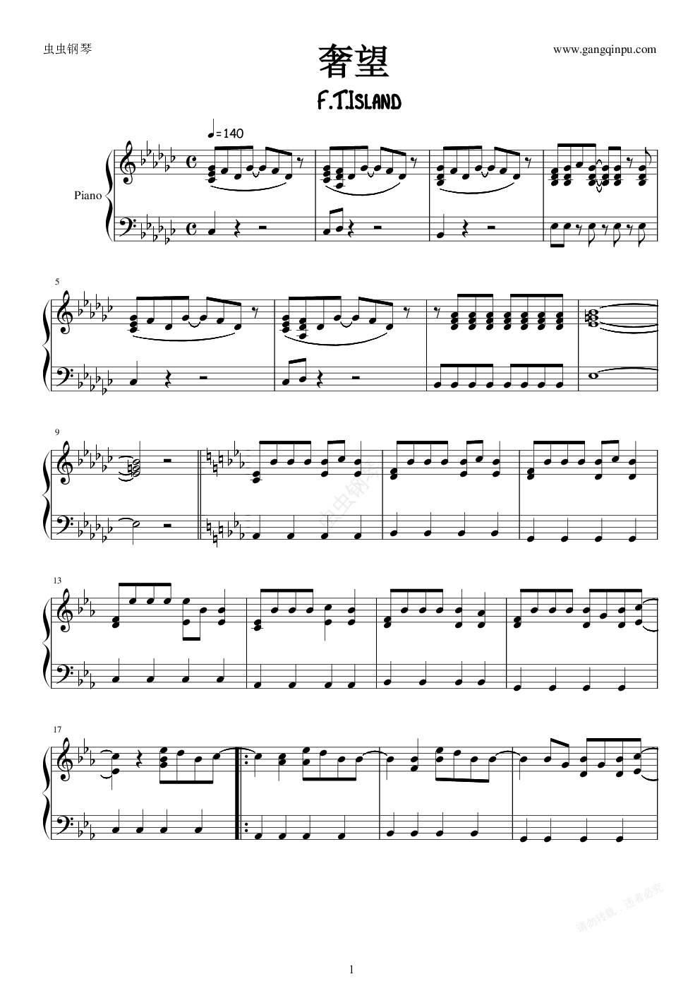 钢琴谱:【韩国】奢望(F.T Island)