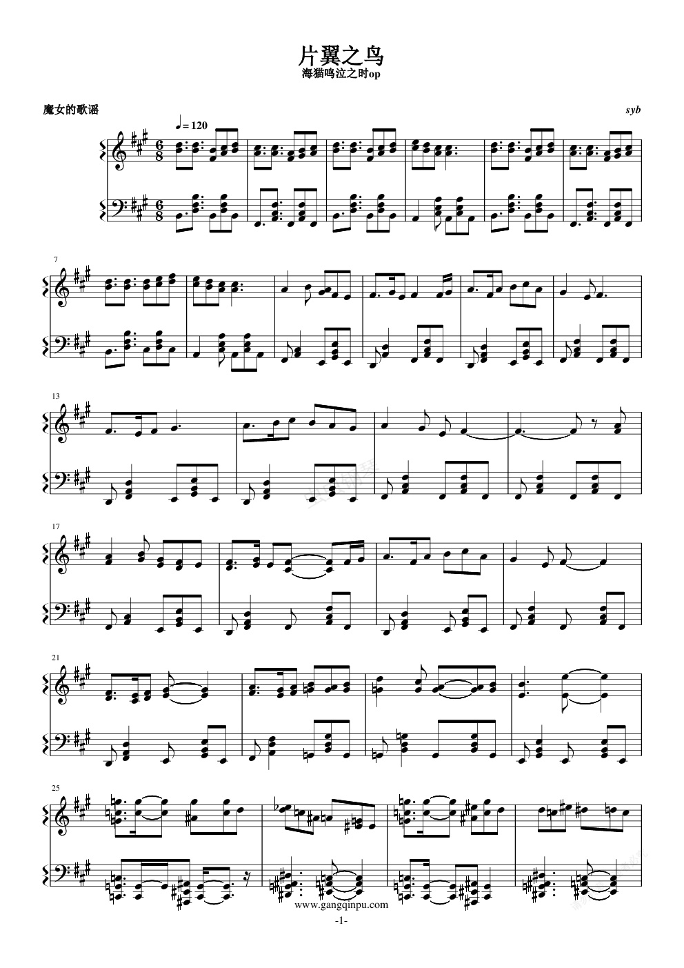 钢琴谱:海猫op 片翼之鸟