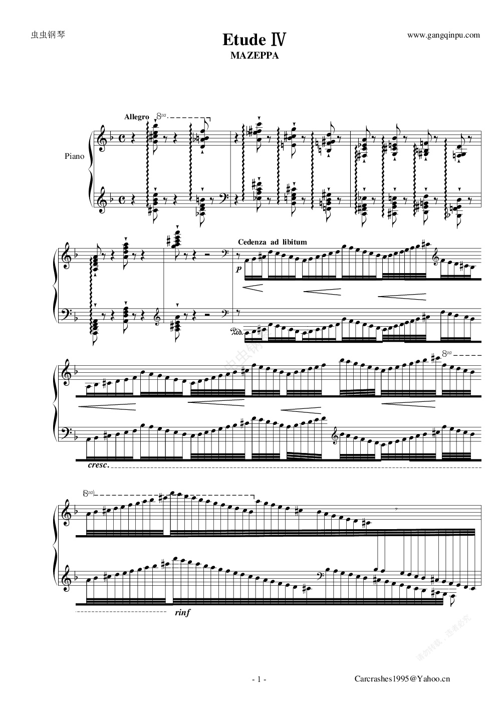 钢琴谱:李斯特超技练习曲4《马捷帕》