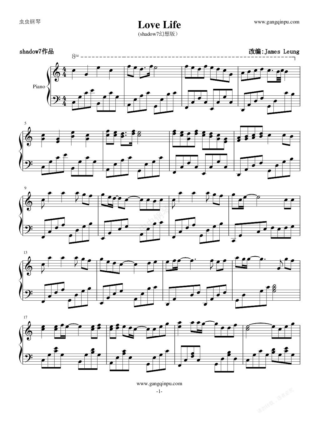 钢琴谱:Love Life幻想曲