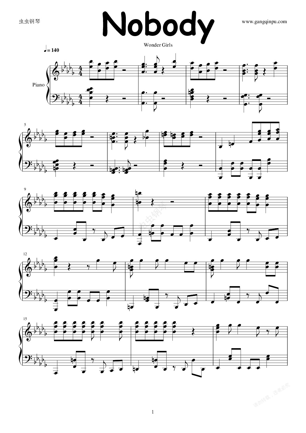 钢琴谱:【韩国】Nobody(Wonder Girls)
