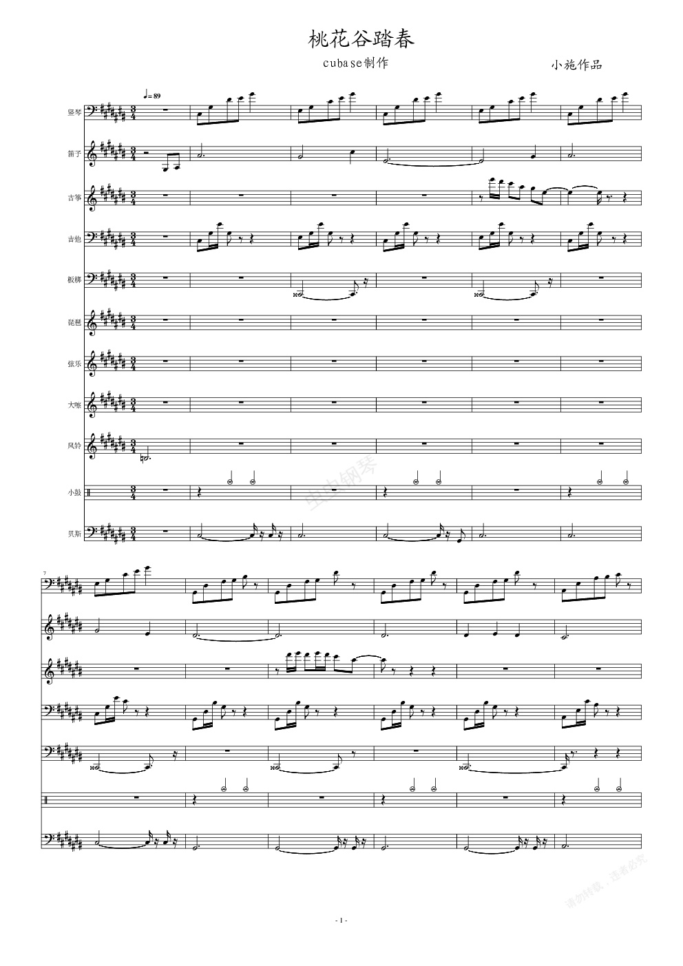 钢琴谱:中国风-桃花谷踏春【笛子、古筝、琵琶】