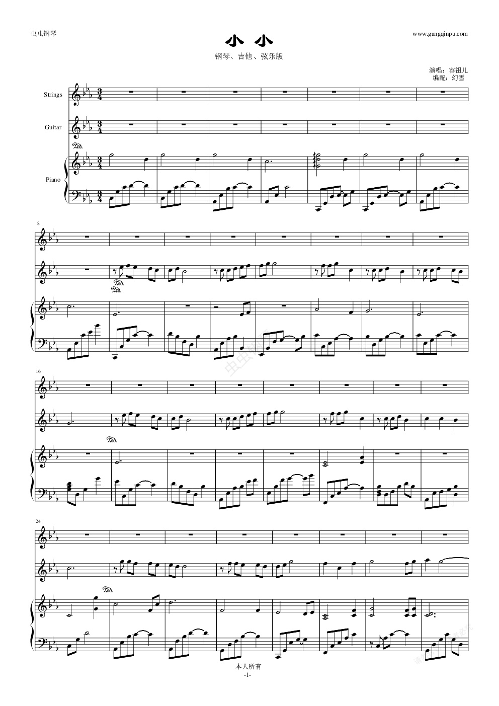 很喜欢《小小》这首歌,凄美,由原曲改编的钢琴、吉他与弦乐合奏版,希望大家喜欢~当然,乐器可以换成大家喜欢的~