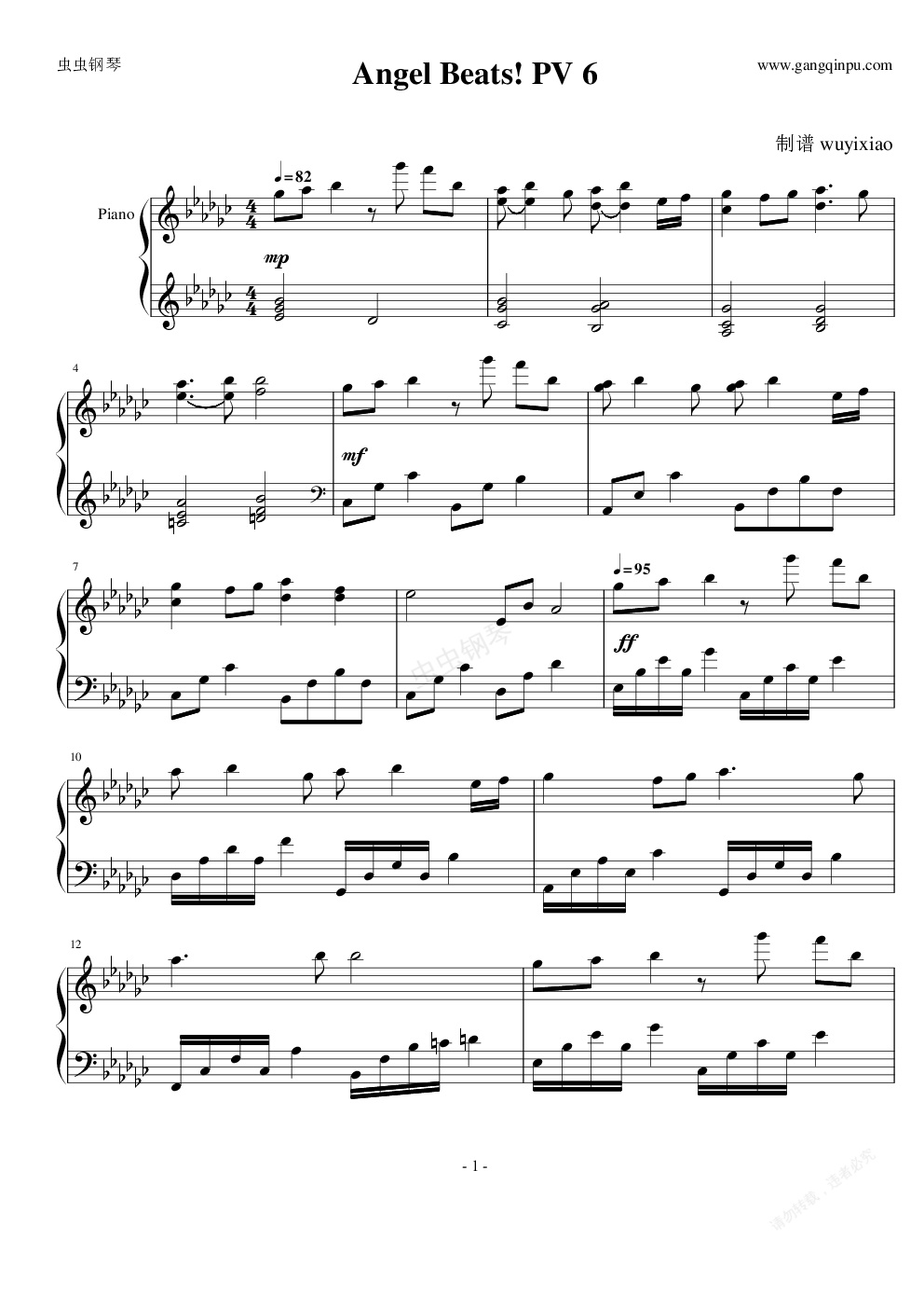 钢琴谱:Angel Beats! PV 6