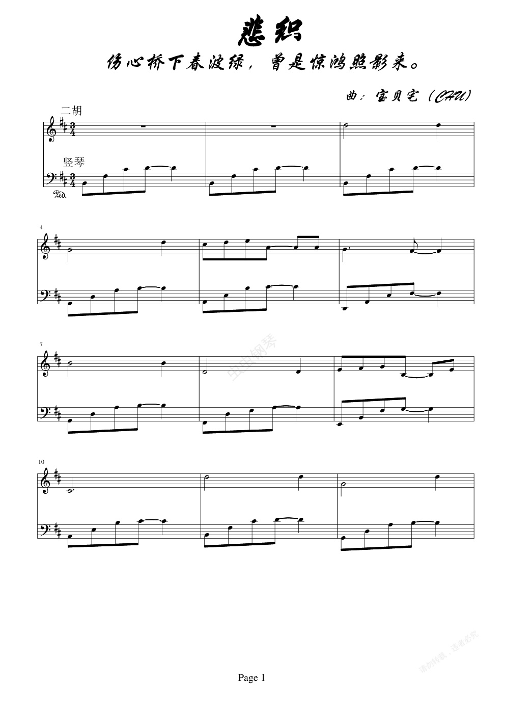 钢琴谱:悲织