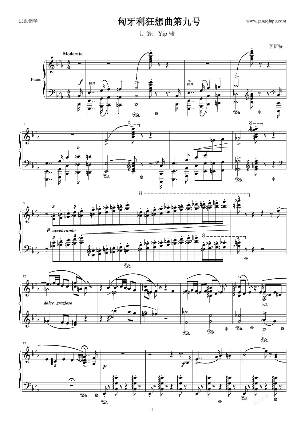 一周前,我听了吉列尔斯演奏的《匈牙利狂想曲第9号》,深深受到震动,于是花了四天时间,把这个曲子打了下来。